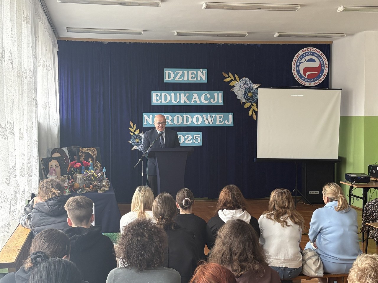 Z okazji Dnia Edukacji Narodowej w naszej szkole odbyła się uroczysta akademia, podczas której głos zabrał Dyrektor szkoły, Pan Mirosław Lipiński.