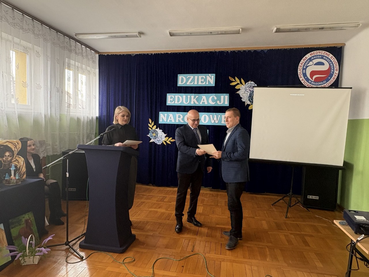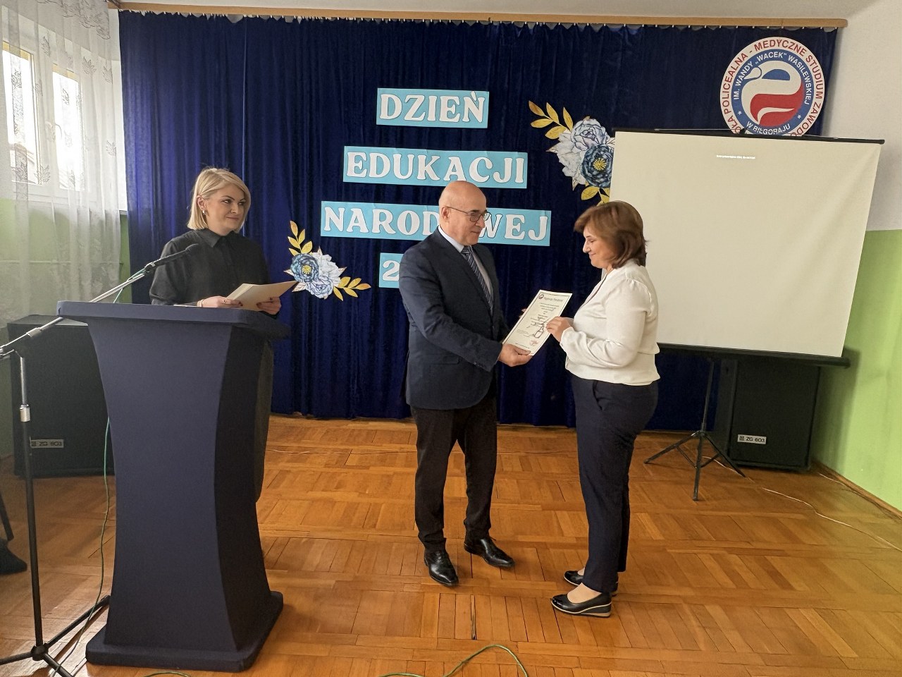 W swoim przemówieniu wyraził wdzięczność wszystkim nauczycielom, wychowawcom oraz pracownikom szkoły za ich codzienny trud, zaangażowanie i pasję, z jaką realizują swoje zadania. Podczas spotkania Pan Dyrektor uhonorował również grono pracowników, wręczając im nagrody w dowód uznania za profesjonalizm i wkład w rozwój naszej szkoły.