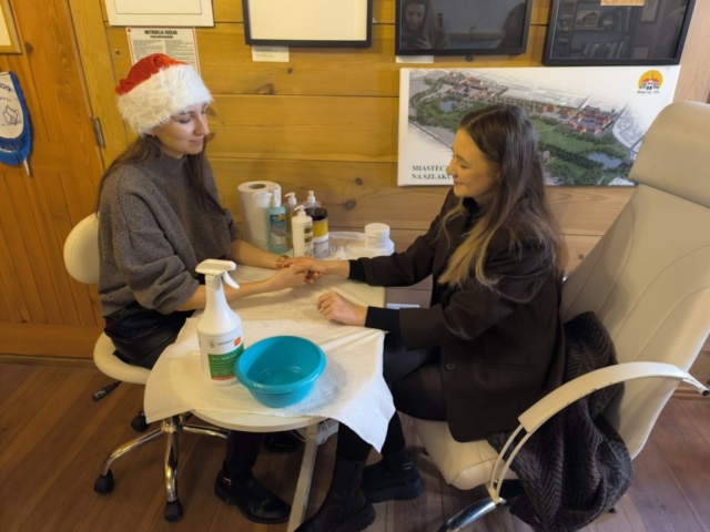 Technik usług kosmetycznych zadbał o urodę uczestników jarmarku, oferując zabiegi pielęgnacyjne na dłonie oraz makijaże.