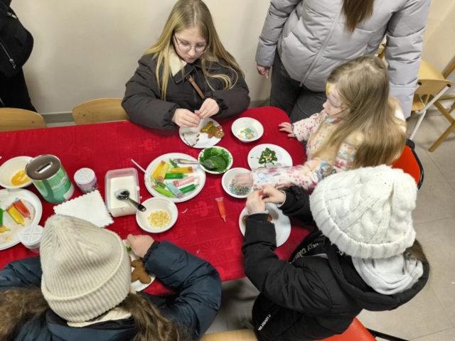 Słuchacze kierunku Opiekunka dziecięca przygotowali atrakcje dla najmłodszych – kolorowe malowanie twarzy oraz wspólne lukrowanie pierniczków, które cieszyło się ogromnym zainteresowaniem dzieci.