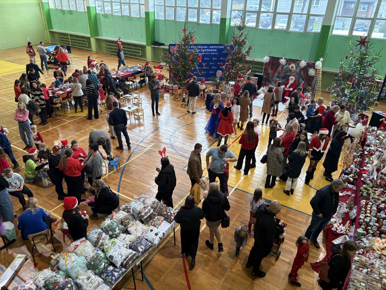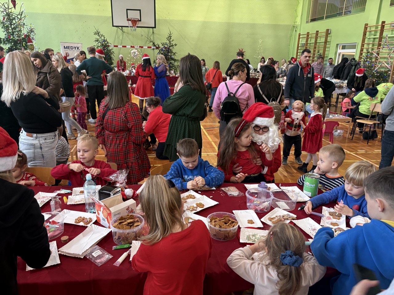 6 grudnia 2025 r. Hala Sportowa Szkoły Policealnej – Medycznego Studium Zawodowego im. Wandy „Wacek” Wasilewskiej w Biłgoraju wypełniła się świąteczną atmosferą podczas wyjątkowych Mikołajek z Medykiem. Na dzieci czekało wiele atrakcji: wspaniałe przedstawienie, kolorowe dmuchańce, malowanie twarzy, zaplatanie warkoczyków oraz wspólne dekorowanie świątecznych ozdób i pierników. Największą radość sprawił jednak długo wyczekiwany gość – Święty Mikołaj.