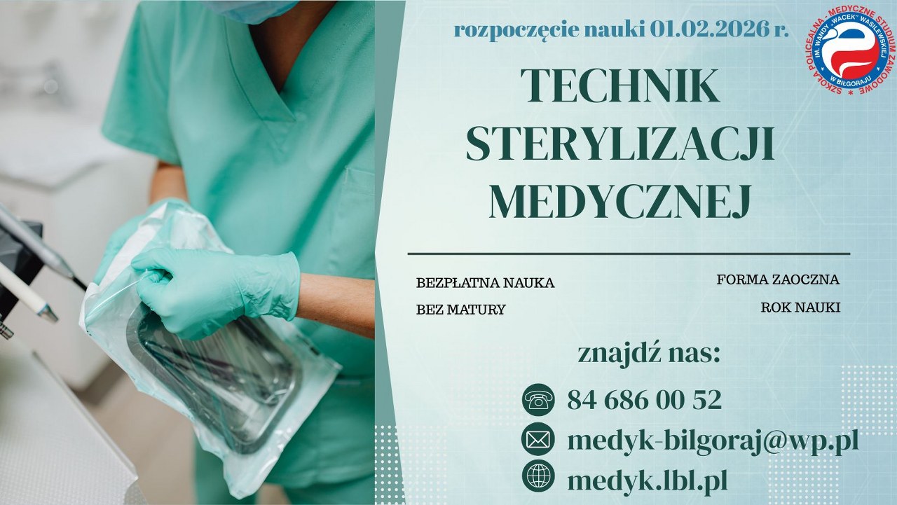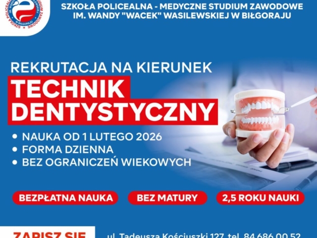 Zapraszamy do nauki na kierunkach: Technik dentystyczny oraz Technik sterylizacji medycznej.